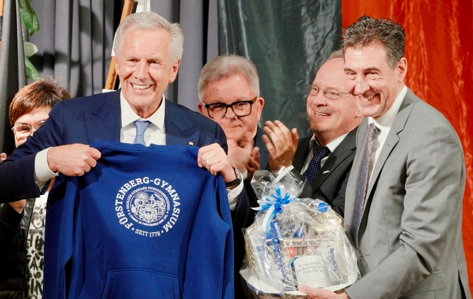 Hoher Besuch auf dem Heuberg: Bundespräsident a.D. Christian Wulff hielt in der Jurahalle Gosheim eine motivierende Rede, in der er für Optimismus und Zuversicht plädierte. Im Anschluss diskutierte er mit Schülerinnen und Schülern des Gymnasiums Gosheim-Wehingen über Zukunftsperspektiven und Herausforderungen für die junge Generation.
